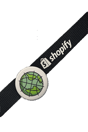 Signature globe on a glossy white button—the Shopifolk‑only badge that drops just for BFCM.